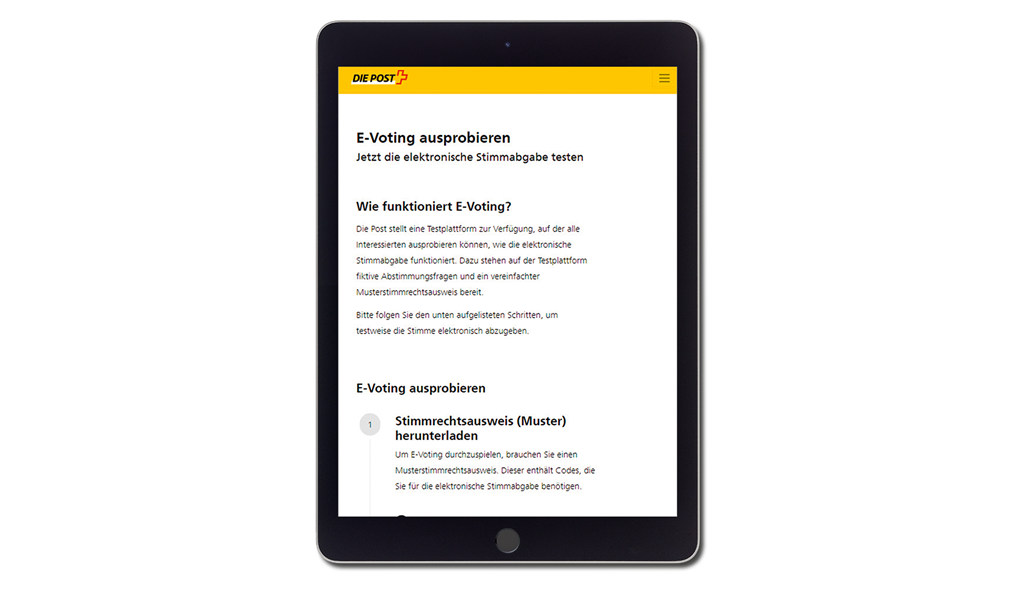 Today, the Federal Council granted three cantons initial authorization for the use of Swiss Post’s e- voting system. The e-voting system developed by Swiss Post will be used for the first time as part of the trial operation for votes in the cantons of Basel-Stadt, St. Gallen and Thurgau on 18 June 2023. This is a first for the new system and an important milestone for Swiss Post. However, work on the e-voting system has not yet been completed. Swiss Post will carry out ongoing developments to the system in future – and will continue to rely on the expertise of independent specialists.
